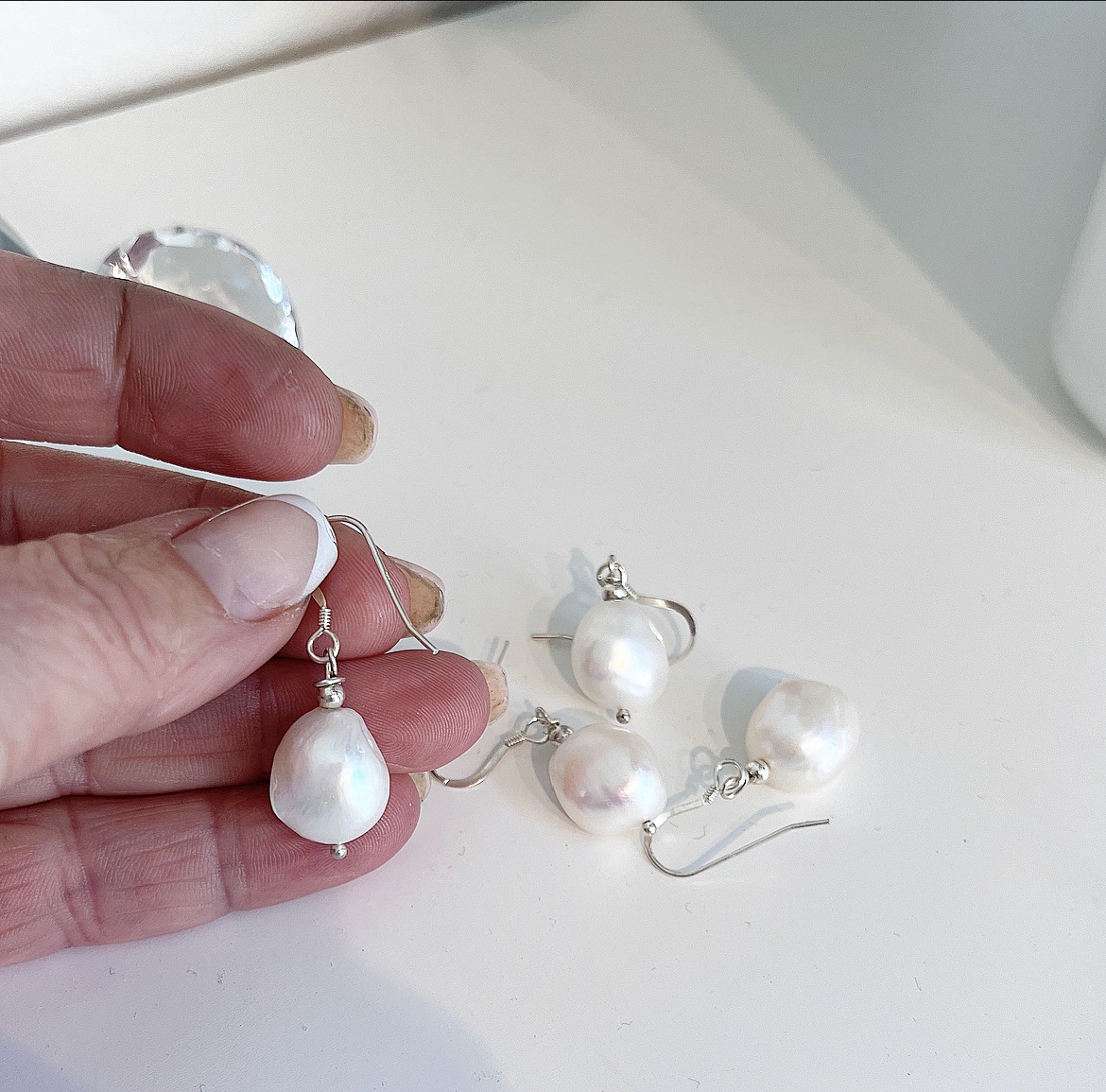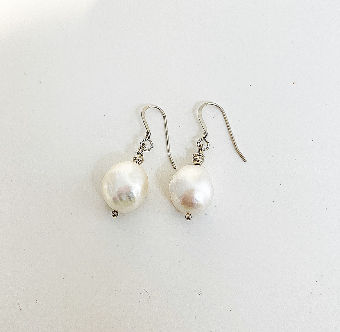 Dessa chunky pearl earring är vackra oregelbundna sötvattenpärlor monterade i en krok av äkta silver. Pärlans storlek är ca 14mm men är ändå lätta att bära i öronen. Ingen pärla är den andra lik och det är just det som gör dessa örhängen så unika, vackra och levande!