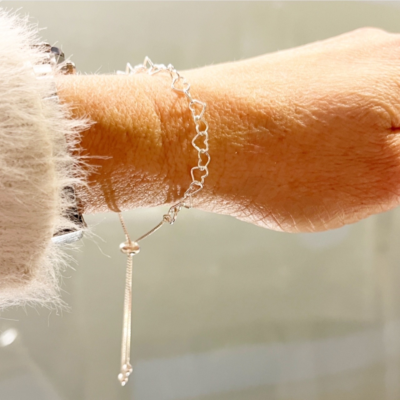 Lots of love – armband har snabbt blivit en favorit hos många och det beror nog på att det kombinerar det ljuvligt gulliga med det stilrena. Dessutom är länken justerbar med hjälp a en snygg stoppkula. Hjärtlänken mäter ungefär 10cm. Allt är skapat i äkta silver.