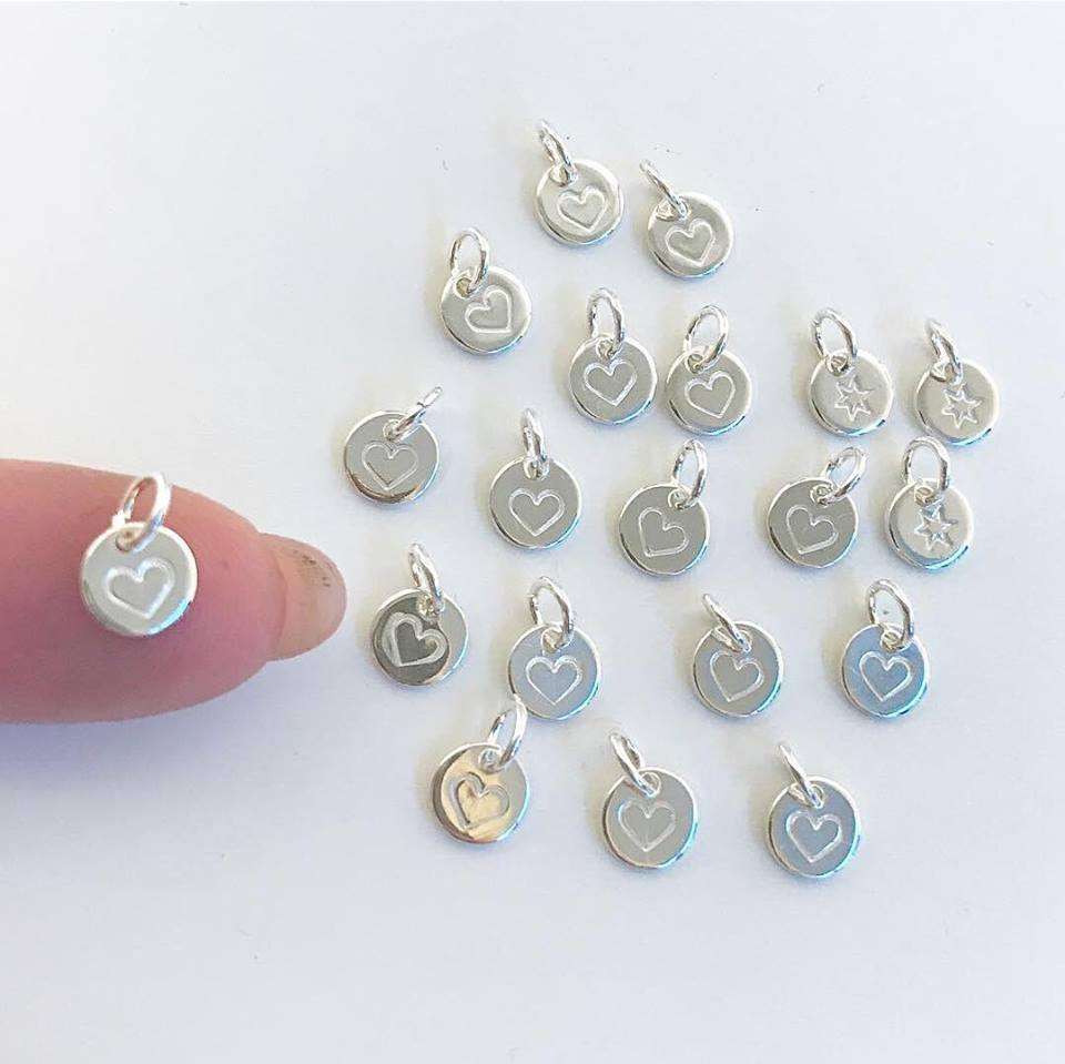Minicoin med hjärta är det lilla smyckestillägget som gör stor skillnad. Denna söta lilla silverbricka på 7 mm i diameter bär ett inhamrat hjärta – handgjort med omtanke och precision. Perfekt när du vill ge bort något litet men meningsfullt, eller när du vill lägga till en extra personlig touch till ditt befintliga namnsmycke.
